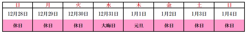 平素は格別のご高配を賜り、厚く御礼申し上げます。 さて、誠に勝手ながら弊社では下記の期間を年末年始休業とさせていただきます。